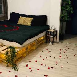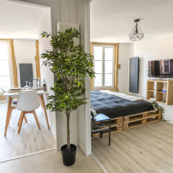 Le studio de 41m2 se compose d’une grande pièce à vivre, d’un lit king size (200×200), d’une cuisine entièrement équipée et fonctionnelle, d’une salle de bains et de toilettes séparés. Nous mettons aussi à votre disposition des produits de première nécessité et de qualité.