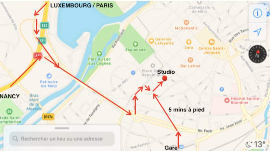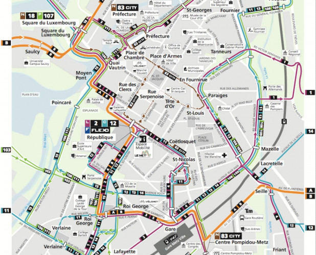 Le centre commercial Muse est idéalement situé derrière la gare (arrêt Centre Pompidou Metz) voir photos (8-10 mins à pieds)