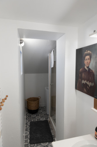 La chambre à coucher est décorée avec des touches médiévales et moderne pour vous plonger dans l’ambiance de cette époque, tout en offrant tout le confort dont vous avez besoin pour passer une bonne nuit de sommeil. La salle de bain a également été entièrement rénovée avec une douche spacieuse.