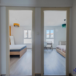 ・ deux chambres élégantes avec bureau malin, deux tables de chevet, miroir de plain-pied astucieux et un lit double (140 x 190 cm) au matelas récent pour des nuits reposantes ;